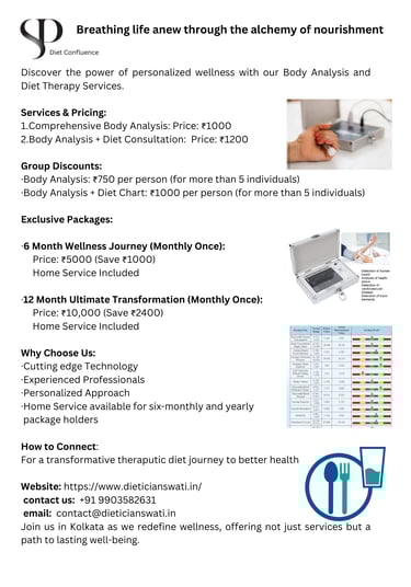 Discover the power of personalized wellness with our Body Analysis , Therapy and Diet consultation Services.