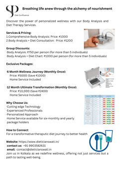 Discover the power of personalized wellness with our Body Analysis , Therapy and Diet consultation Services.